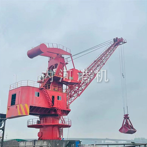 | 本機用于內河港口中小型碼頭,亦可用于庫場,堆棧或廠區內,進行件雜貨或散貨裝卸作業。本機型為單臂架式,鋼絲繩變幅,采用復滑輪補償,貨物可作水平位移,因此可全幅度帶載變幅,作業效率高。本機型吊鉤、抓斗兩用。本機型按《GB3811-83起重機設計規范》和《GB6067-85起重機安全教程》設計、制造。 |